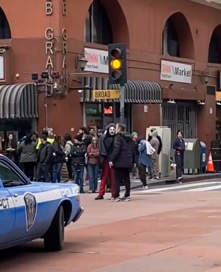برخی از تصاویر فیلم Joker 2 شخصیت جوکر را هنگام پیادهروی و پرسهزنی در شهر گاتهام نشان میدهند. در یکی از آنها، فینیکس را در لباس جوکر میبینیم که موهای سبز خود را با کلاه سیاه پوشانده است. پشت سر او یک چراغ راهنمایی و تابلوی بزرگ خیابان را میتوان دید.