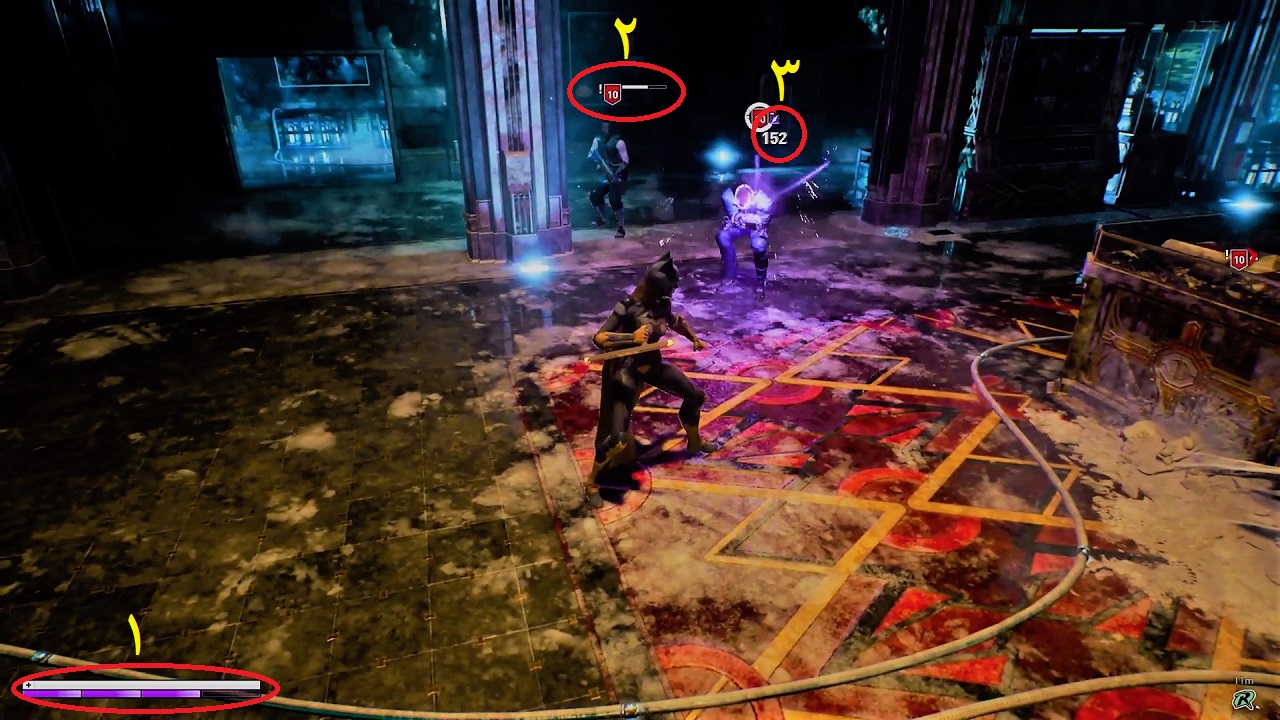 از دیگر عناصر مهم مبارزات این بازی هم میتوان به نوار قدرت اشاره کرد. این نوار بنفش رنگ زیر نوار سلامتی کاراکتر اصلی قرار دارد و البته باید انتظار این را هم داشت که رنگ نوار قدرت – یا نوار ابزار، نوار آدرنالین یا هر نام دیگری که سازندگان برای این مکانیزم در نظر دارند – در بین قهرمانان مختلف متفاوت بوده و به نوعی با رنگ لباسها و ابزار آنها همخوانی داشته باشد. عملکرد این نوار در Gotham Knights درست مثل نوار آدرنالین زرد رنگ در بازی Assassin’s Creed Odyssey است. قهرمانان بازی با هربار استفاده از قدرتهای خود، بخشی از این نوار را از دست میدهند و در طول نبرد با دشمنان میتوانند دوباره نوار قدرت خود را پر کنند. این مکانیز، یکی از سادهترین روشها برای جلوگیری از استفادهی بیش از اندازهی بازیکنان از قدرتهای خود در بازیهای نقشآفرینی است. حتی استفاده از کوچکترین قابلیتها مثل پرتاب Batrang به سمت دشمن هم بخشی از این نوار را مصرف میکند. از سوی دیگر، قابلیتهای قهرمانان این بازی صرفا ماهیت تهاجمی ندارند، بلکه بعضی از مهارتهای قهرمانان، به نوعی آنها را در برابر آسیب دشمنان مقاوم میکند؛ مثل گروهی از خفاشها که با گرد آمدن دور Batgirl، از او در برابر آسیب محافظت کرده و در عین حال به دشمنان اطراف او آسیب میزدند. این عناصر جدید به نوعی جایگزین قابلیت Combat Takedown در مجموعهی Arkham است که بازیکنان با استفاده از آن میتوانستند دشمنان عادی را با یک حرکت سینمایی و در یک لحظه از میان بردارند. معرفی مکانیزم جدید مبارزات به بازی، ماهیت آن در Gotham Knights را در مقایسه با مجموعهی Arkham به کلی تغییر داده است و عمق استراتژیک بیشتری به این بازی بخشیده؛ البته بزرگترین نوآوری بازی Gotham Knights در جای دیگری نهفته است.