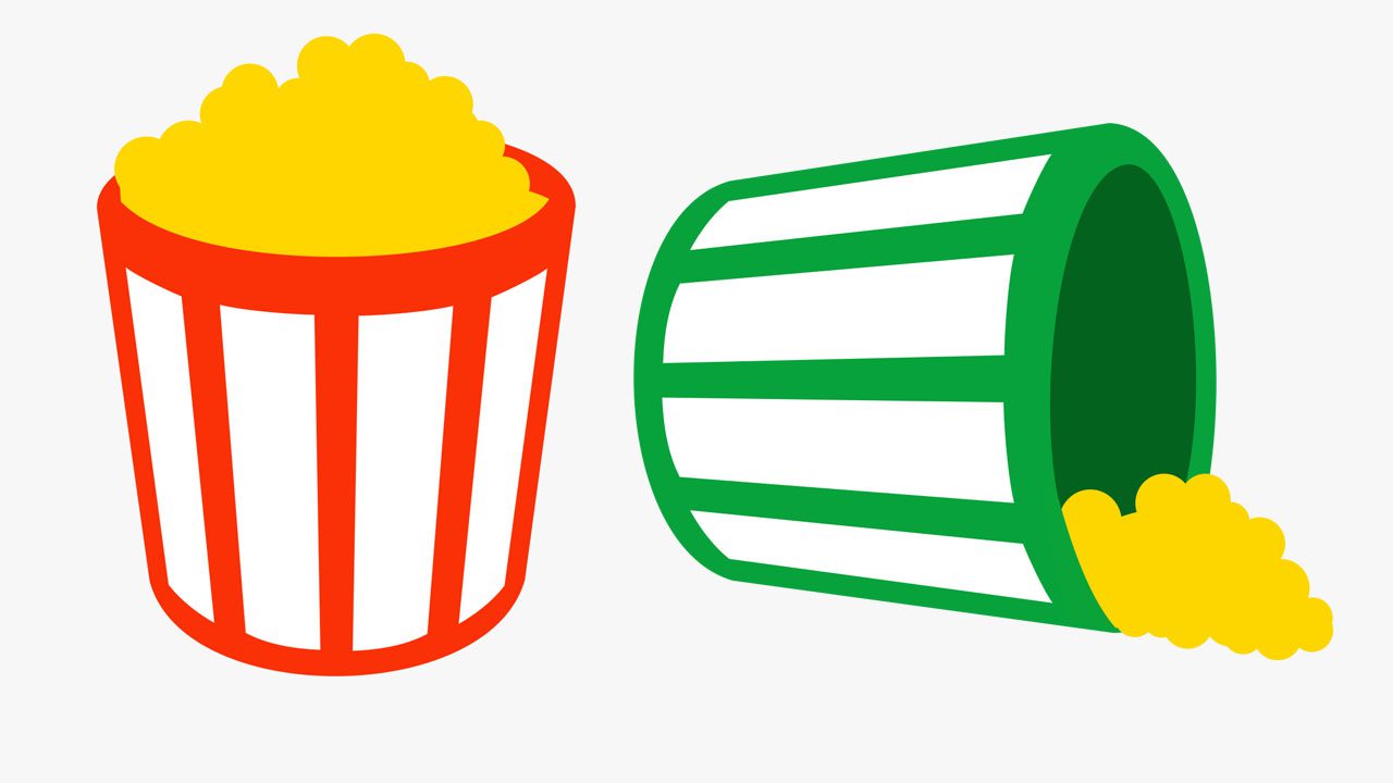 - ظرف ذرت بودادهی ایستاده: زمانی این تصویر را مشاهده میکنید که بیشتر از ۶۰ درصد از کاربران به فیلم یا سریال مورد نظر امتیاز ۳.۵ یا بیشتر داده باشند. این نماد، به منزلهی خوب و تازه بودن فیلم از نظر کاربران است.