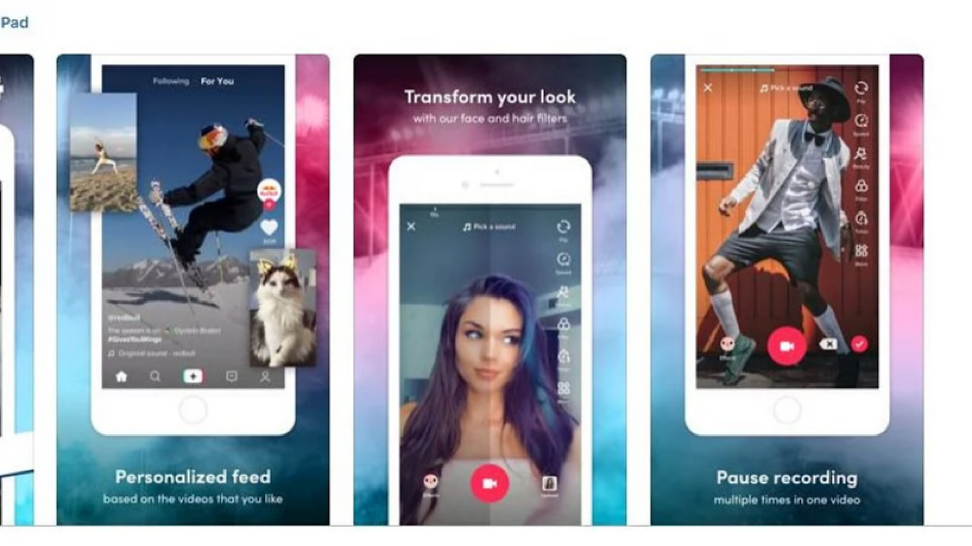 در مقابل، برنامه TikTok دارای جلوههای ویژه و فیلترهایی بوده که باعث جذاب شدن ویدیوها و افزایش محبوبیت آنها میشود. در ماه سپتامبر (شهریور)، کمپانی ByteDance یک قابلیت جدید به این برنامه اضافه کرد که کاربران با توجه به این قابلیت میتوانستند، واکنشهای دیگر افراد را به ویدیوهای خود تماشا کنند، همچنین یک قابلیت بینظیر مانند برنامه YouTube به این نرمافزار اضافه شد که به کاربران پس از دو ساعت استفاده مداوم هشدار میداد که کمی استراحت کنند.