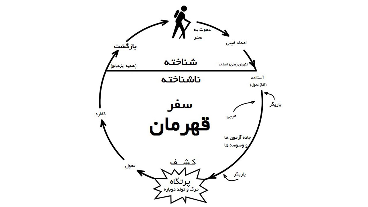 بخش اول با نام Departure یا عزیمت شناخته شده و شاهد آن در داستان بازی Alan Wake هستیم که قهرمان داستان جهان آشنای خود را پشت سر میگذارد. بخش دوم Initiation یا آغاز نام داشته و در بازی Alan Wake 2 دیده شده که قهرمان در جهانی غریب، به ماجراجویی میپردازد. بخش سوم Return یا بازگشت نام داشته و گمان داریم داستان بازی Alan Wake 3 بوده که قهرمان داستان به بلوغ فکری یا هدف اصلی خود میرسد.