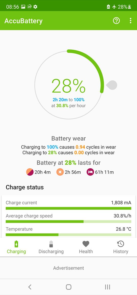 اگر به هر دلیلی میخواهید در بلند مدت وضعیت باتری گوشی هوشمند خود را زیر نظر داشته باشید، میتوانید از Accubattery استفاده کنید که یک نرم افزار شخص ثالث به شمار میرود. این نرم افزار به صورت رایگان قابل دریافت است اما با خرید نسخه کامل از شر تبلیغات خلاص شده و تعدادی قابلیت جدید در دسترس قرار میگیرند.