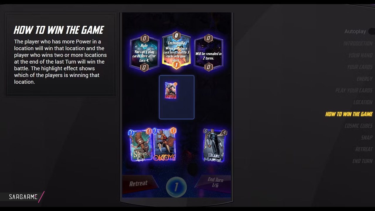 زمانی که شما برای اولین مرتبه بازی Marvel Snap را نصب میکنید، آموزشی بسیار کامل در اختیار شما قرار گرفته که تمامی مکانیسمهای بازی را به شما یاد میدهد. هر کارت میزان قدرت مخصوص به خود را داشته و در کنار آن برخی قدرتهای ویژخ دیگر را ارائه میدهد. در مبارزه، هدف شما به دست آوردن دو یا چند مکان در تعداد دورهایی محدود با استفاده از کارتهای خود است. البته نباید فراموش کرد که هر کارت برای شما هزینهای دارد و زمانی که شما یک مکان را به دست آورید، قدرت کارتهای شما در آن مکان نسبت به حریف شما افزایش مییابد.