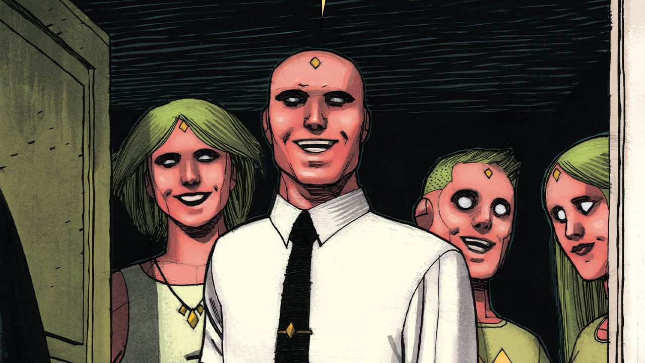 ویژن برای خود یک همسر اندرویدی انساننما و دو کودک از جمله یک پسر و یک دختر – که هردوی آنها مثل پدر و مادرشان اندرویدهای انساننما هستند – میسازد و با به همراه داشتن آنها به حومهی شهر واشنگتن دیسی نقل مکان میکند و یک زندگی معمولی و دوستداشتنی را در یک خانه با حصارهای چوبی سفید در پیش میگیرد. اما در کمال بداقبالی، زندگی نقلی و بامزهی این خانوادهی اندرویدی با یک تراژدی غافلگیرکننده به پایان رسید.