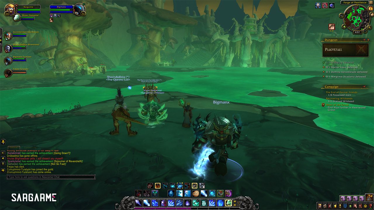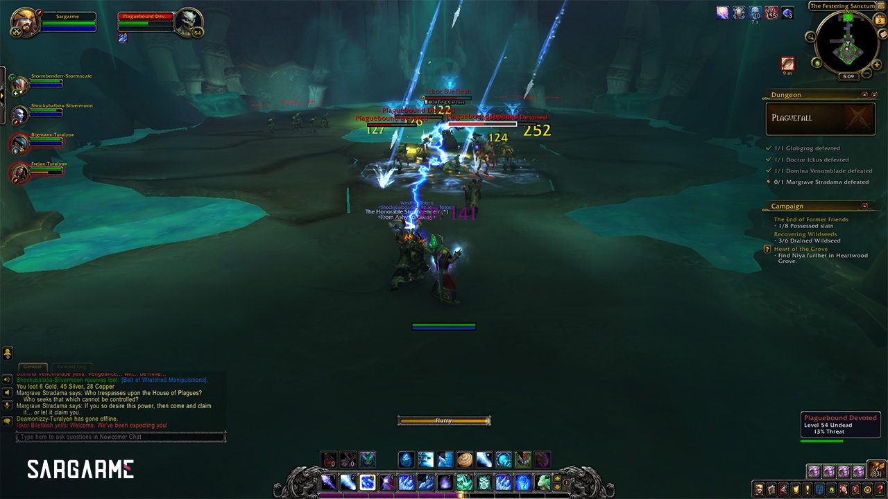 لذت بردن از مبارزه و گشت و گذار در دانجنها همچنان به قوت خود باقیست. اصلا مگر میشود وارد دانجنهای WoW شد و بعد از نبرد و از پا در آوردن آخرین هیولای دانجن به شما و دیگر همتیمیهایتان شادی معالوصفی دست ندهد؟ بازی WoW یکی از اهدافش در ایجاد دوستی بین گیمرهایی است که در دنیای وارکرفت، تک و تنها کوئست قبول میکنند. با این حال بازی مثل همیشه شما را وادار نمیکند تا حتما وارد یک گیلد (Guild) شوید اما اگر در حین تجربهی بازی کسی شما را برای ورود به یک گیلد دعوت کرد، بهتر است درجا رد نکنید. بودن در گیلد میتواند به تجربهی شما در بازی به شدت یاریرسان باشد. با این حال اگر دانجنها برای شما تکراری شدهاند و نیاز به یک چالش بزرگتر دارید، در اکسپنشن Shadowlands المانی وجود دارد که به برج تورگست (Torghast) معروف است؛ دانجنی که میتواند هر فردی را راضی کند.