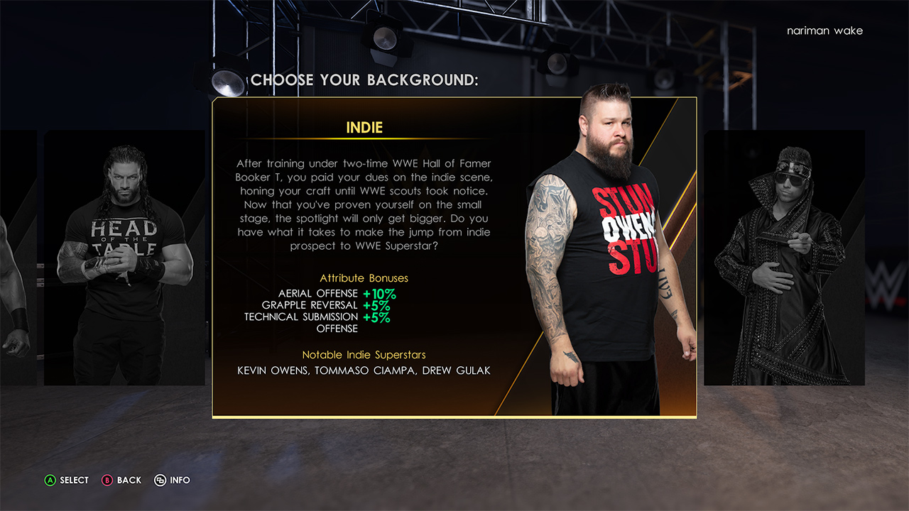 در بخش MyRise شما در ابتدا باید کشتیگیر خود را بسازید و وارد WWE شوید. بخش ساخت کشتیگیر یکی از جذابترین بخشهای WWE 2K22 محسوب شده و آپشنهای زیادی پیش روی شما قرار میگیرد و حتی میتوانید بکگراند زندگی کشتیگیری که میسازید را انتخاب نمایید. سپس شما در Performance Center یا محل پرورش استعدادهای کمپانی WWE قرار میگیرید و توسط افسانههایی مثل شان مایکلز و رود داگ جسی جیمز تمرین میبینید و باید به قدری خوب عمل کنید که نظر ترپل اچ را جلب کنید و در نهایت با یکی از برندهای Raw ،NXT یا SmackDown قرارداد امضا کنید و وارد راستر اصلی WWE شوید. بخش MyRise متاسفانه کاملا سینوسی عمل میکند و شامل نقاط قوت و ضعف زیادی است. در شروع استوریلاینها، دست شما تقریبا باز است و میتوانید استوریلاینی را که بیشتر دوست دارید را زودتر انجام دهید. بعضی از این استوریلاینها جذاب و تا حدود زیادی فان هستند و نکته جالب این است که تصمیمات زیادی در پیش روی شما قرار میگیرد تا اصطلاحا Baby Face یا Heel شوید. ولی گاهی اوقات این استوریلاینها به قدری حوصلهسربر، تکراری و فاقد هر گونه اهمیت میشوند که فقط دعا میکنید که زودتر تمام شوند و وارد استوریلاین بعدی شوید.