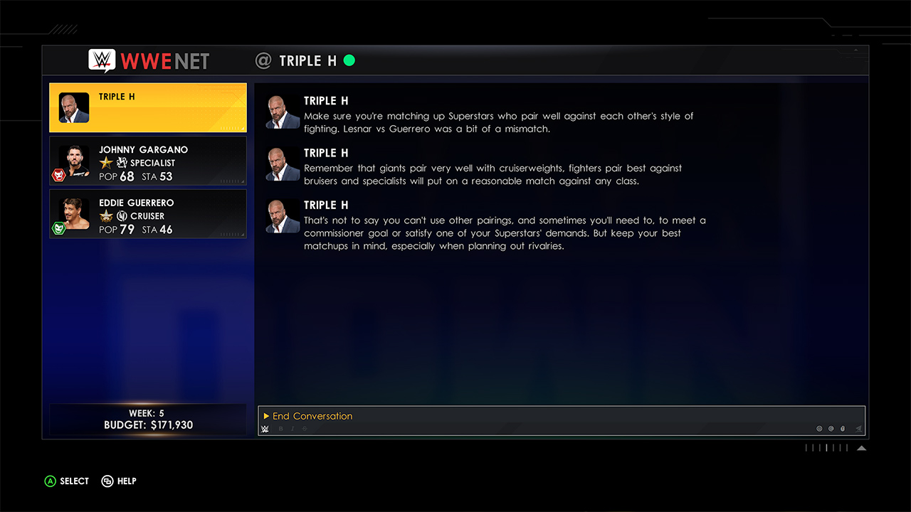 به بخش موردعلاقهی من که سالها (بعد از SmackDown VS Raw 2008) جای آن خالی بود میرسیم. در بخش MyGm شما در قالب یکی از جنرال منیجرهای کمپانی WWE قرار میگیرید یا حتی میتوانید از کشتیگیری که ساختید، در این بخش استفاده کنید. سپس شما یک برند از بین برندهای اصلی کمپانی یعنی Raw ،SmackDown ،NXT و NXT UK انتخاب خواهید کرد و تنظیمات مربوطه را انجام میدهید. سپس وارد بخش Draft میشوید و حالا در مقابل جنرال منیجری دیگر باید کشتیگیرانی که میپسندید را انتخاب کنید. هر کدام از این کشتیگیران هزینهی متفاوتی با دیگر کشتیگیران دارند و باید سعی کنید کشتیگیران محبوبی را وارد برند خود کنید. پس از انتخاب ۸ کشتیگیر، میتوانید Draft را چند راند دیگر ادامه دهید یا این که مستقیم وارد جدال بین دو جنرال منیجر شوید و از باقیمانده بودجهی خود به نحو دیگری استفاده کنید. ابتدا شما قهرمانان کمربند برند خود را انتخاب و هر هفته شما باید سه مسابقه بین کشتیگیران برند خود ترتیب دهید و دو Promo نیز به کشتیگیران مناسب دهید. همچنین شما در هر زمانی که بخواهید، قادر هستید تا با Free Agent ها قرارداد ببندید و حتی کشتیگیرانی قدیمی مثل آندرتیکر، باتیستا، د راک و… را به طور موقت استخدام کنید. همچنین با گذشت زمان میتوانید مثلا استادیوم محل برگزاری شوی خود را تغییر دهید و با پرداخت پول بیشتر، ریتینگ بالاتری در مسابقات دریافت کنید. نکتهی منفی این بخش در اینجاست که یک سری محدودیتها وجود دارند. مثلا اگر شما یک کشتیگیر Heel را در مقابل کشتیگیر Face قرار دهید، ریتینگ خوبی دریافت نمیکنید و یا اینکه باید حتما حواستان به Class کشتیگیرانی را که در مقابل هم قرار میدهید باشد و متاسفانه این موضوع اصلا منطقی به نظر نمیآید. در کنار اینها نیز نوع مسابقات فقط به حالت تک به تک و ۲در مقابل ۲ محدود میشود و تنوع خیلی پایینی دارد.همچنین در این بخش تنوع کمربندهای قهرمانی به شکل عجیبی پایین است و فقط یک کمربند برای مردان و یک کمربند برای زنان برند شما وجود خواهد داشت. این بخش به رغم این که توجه زیادی به آن نشده است، اما هستهی بسیار امیدوارکننده، جذاب و اعتیادآوری دارد و میتوانیم امیدوار باشیم که در نسخهی بعدی، بخش MyGm خیلی پربارتر و با آزادی عمل بیشتری داشته باشیم.