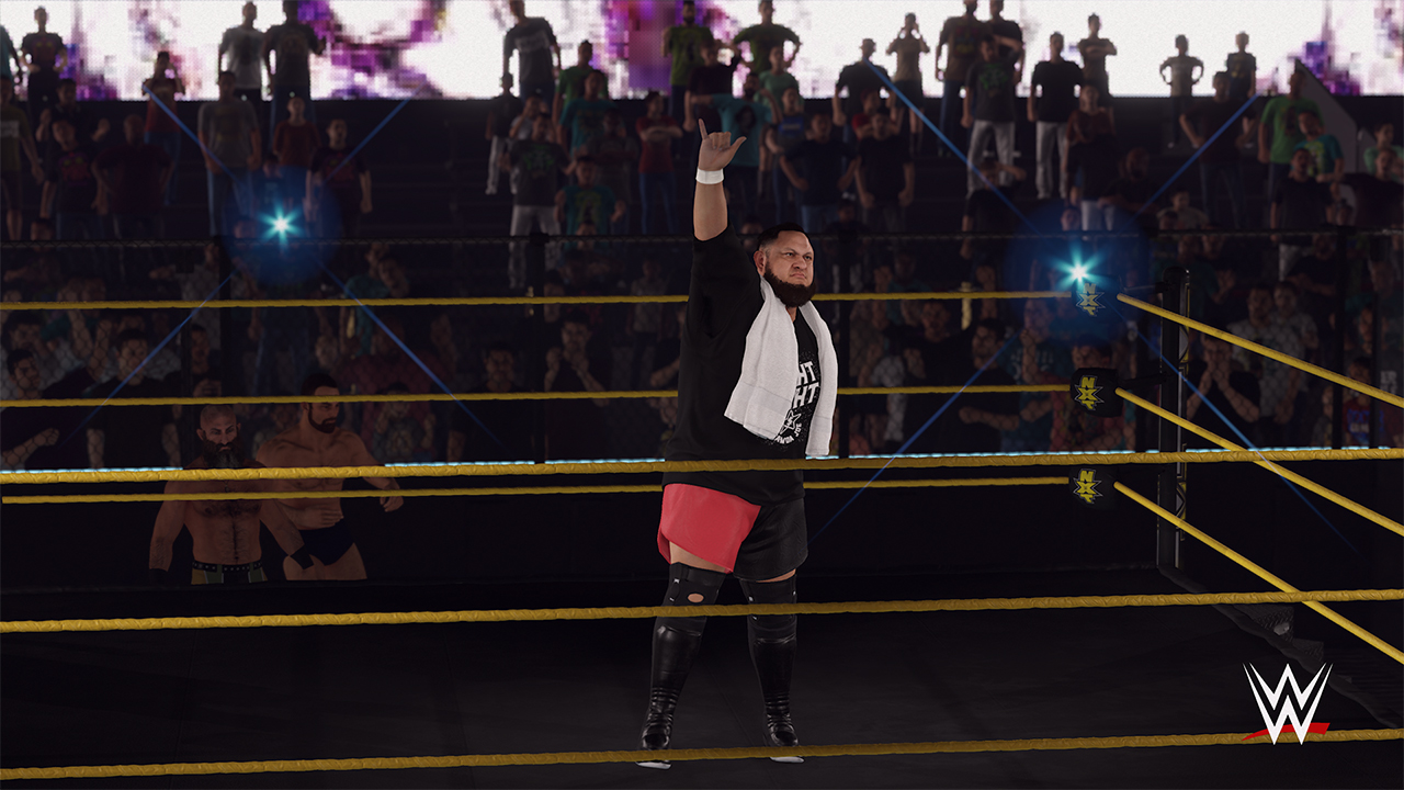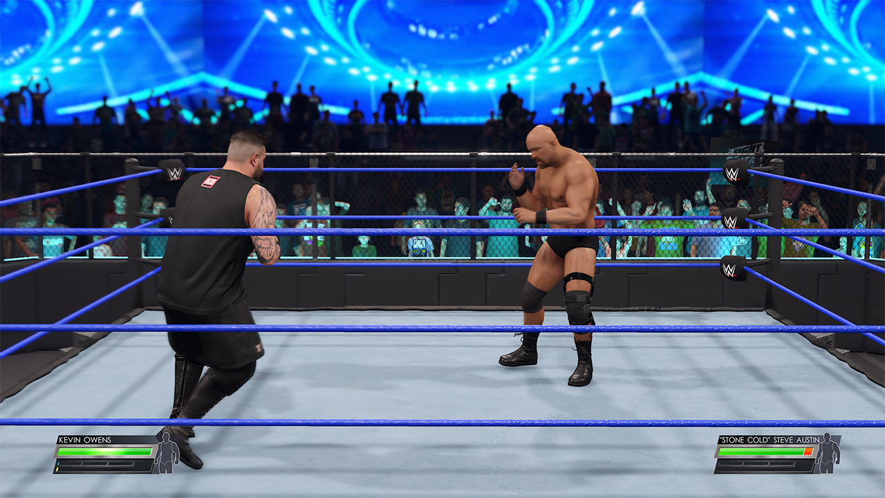 صحنهی ورود کشتیگیران بیشتر از هر نسخهی دیگری از این سری، جذابتر است و حسی وصفنشدنی را ارائه میدهد و خوشبختانه هم بالاخره از شر گزارشگری خستهکننده و کاملا یکنواخت نیز راحت شدیم! بخش HUD نیز کمی تغییر داشته و حالا تعداد دفعات بدل کردن ضربات و فنون کشتیگیران نامحدود شدهاند. در HUD مخصوص هر کشتیگیر دو نوار آبی و طلایی وجود دارند که نوار آبی با اجرای حملات به حریفان پر شده و از آن میتوانید برای اجرای ابیلیتی خاص خود(Payback) استفاده کنید و یا Signature Move کشتیگیر خود را روی حریف اجرا کنید. نوار طلایی نیز نشاندهندهی وضعیت فینیشر کشتیگیر شماست و با پر شدن آن، میتوانید فینیشر خود را روی حریف اجرا کنید و شانس بالایی برای Pin کردن و بردن بازی کسب کنید.