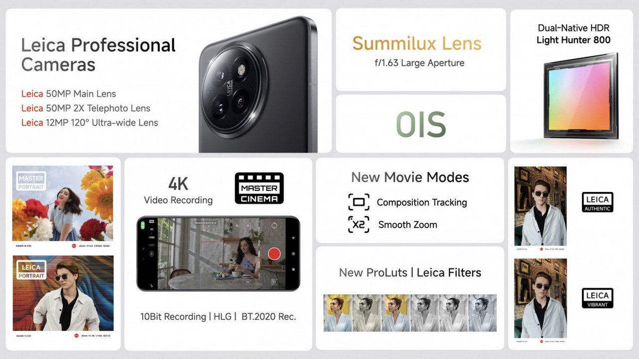 در کنار این سنسور قدرتمند، یک دوربین پرتره ۵۰ مگاپیکسلی با لنز ۵۰ میلیمتری و امکان زوم ۲ برابری و دیافراگم f/1.98 وجود دارد که فاقد لرزشگیر اپتیکال است. همچنین یک سنسور فوق عریض ۱۲ مگاپیکسلی با زاویه دید ۱۲۰ درجه، لنز ۱۵ میلیمتری و دیافراگم f/2.2 نیز در این مجموعه دیده میشود. پردازش تصاویر توسط سیستم ISP سهگانه ۱۸ بیتی موجود در اسنپدراگون 8s نسل ۳ انجام میشود که با فناوری AISP (AI + ISP) اختصاصی شیائومی همراه است.