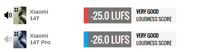 در بخش اسپیکرها، شیائومی 14T از نظر بلندی صدا کمی بهتر عمل میکند و نمره -25.0 LUFS را دریافت کرده است، در حالی که 14T پرو نمره -26.0 LUFS دارد. هر دو گوشی صدای با کیفیت و بلندی ارائه میدهند، اما 14T پرو صدای گرمتر و باس بهتری دارد.