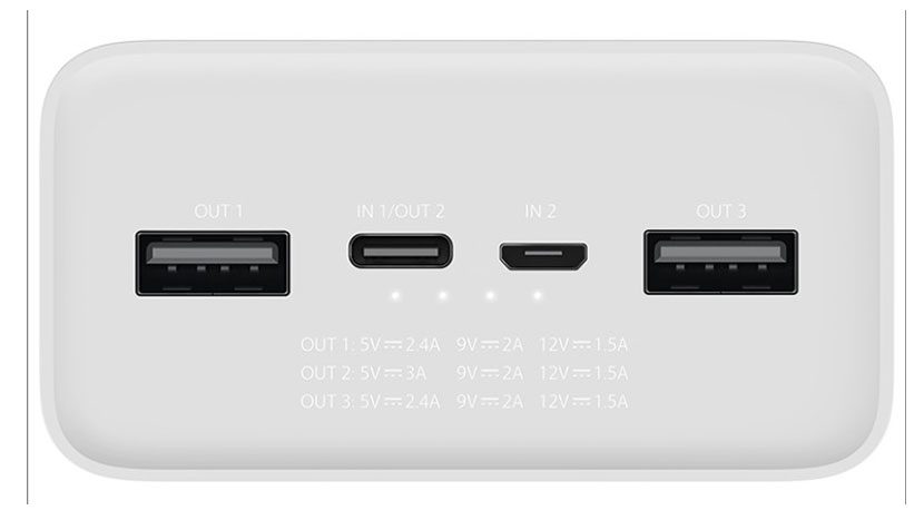این پاور بانک دارای دو پورت USB-A با اندازه کامل، یک پورت USB تایپ C و یک microUSB است. پورتهای USB-A و USB تایپ C قادرند دستگاه را با قدرت ۱۸ وات شارژ کنند، اما باید به این نکته توجه داشت دستگاه مورد نظر باید امکان پشتیبانی از این فناوری را داشته باشد.