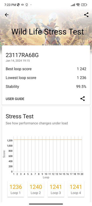 از لحاظ قدرت پردازشی و گرافیکی، عملکرد این گوشی مشابه گلکسی A24 سامسونگ اما عملکرد آن در پایداری بینظیر است به گونهای که حتی اگر یک ساعت آن را زیر شدیدترین فشار هم قرار دهید باز هم تمام توان گرافیکی و پردازشیاش را حفظ خواهد کرد.