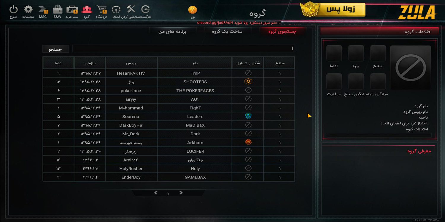 اگر تاکنون عضو هیچ گروهی نشدهاید، با کلیک روی گزینهی «گروه» وارد منویی میشود که سه پنجره دارد. بزرگترین پنجره که تقریبا در وسط صفحه قرار میگیرد، لیست تمامی گروههای موجود در بازی را نشان میدهد تا بتوانید بر اساس ویژگیهای مختلف از جمله تعداد اعضا، سطح گروه و غیره یکی را انتخاب کرده و برای آن درخواست عضویت بفرستید.